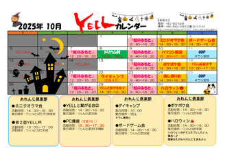 (パソコン講座、ボードゲーム会、ポケポケ会、デイキャンプ、ハロウィン🎃、YELL杯(麻雀会)、YELLと繋がる会②、ミニジオラマ会、推し語り会)